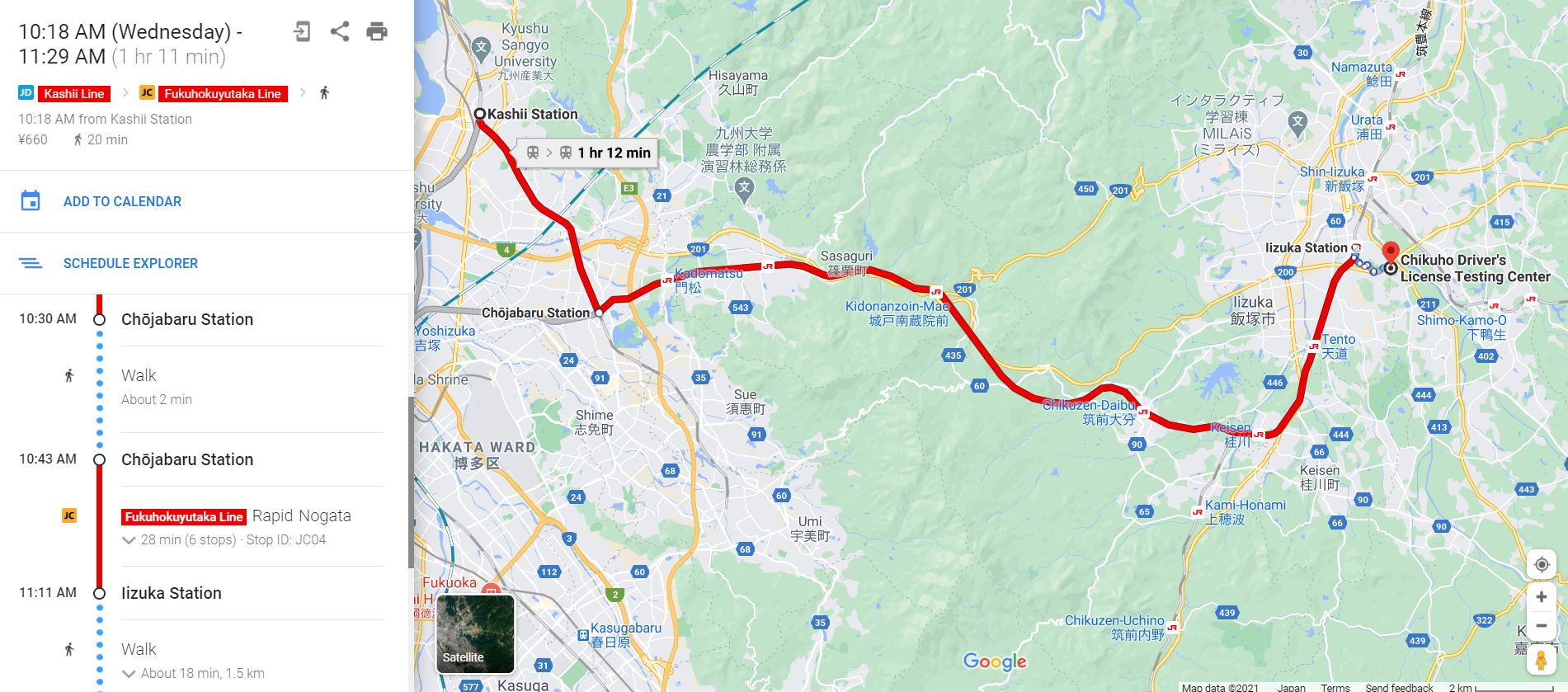 * Please note that the number of direct trains is small and you can change trains at the "Iizuka Bus Terminal" below.